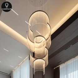 Bắc Âu Thiết Kế Cao Treo Pha Lê Acrylic Đèn Chùm Lớn Vòng Mặt Dây Chuyền Đèn Phòng Sang Trọng Thanh Trang Trí Nội Thất Sắt Kim Loại Bóng Đèn Chiếu Sáng